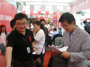 成都電視臺記者(右)在讀書(shū)周活動(dòng)現場(chǎng)